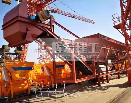 輝宏建工:它的進料機構由上料架、進料斗及提升裝置等組成,JS系列各機型的進料機構有所不同。 全自動JS500型機的上料系統由卷揚機構、上料架、料斗、進料漏斗等組成。